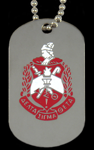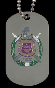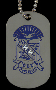 Step up to the ultimate in recognition Dog Tags. Full color organization crest on one side and letters on the other. Full color enamel details are finished on our jewelry quality tags with silver plating. Full military style stainless chains keep your tag in clear view. Packaged and ready for retail.